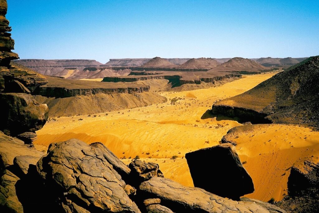 A rarely used camel route connecting Timinit to the oasis of Terjit, offering strong isolation and raw desert scenery.
